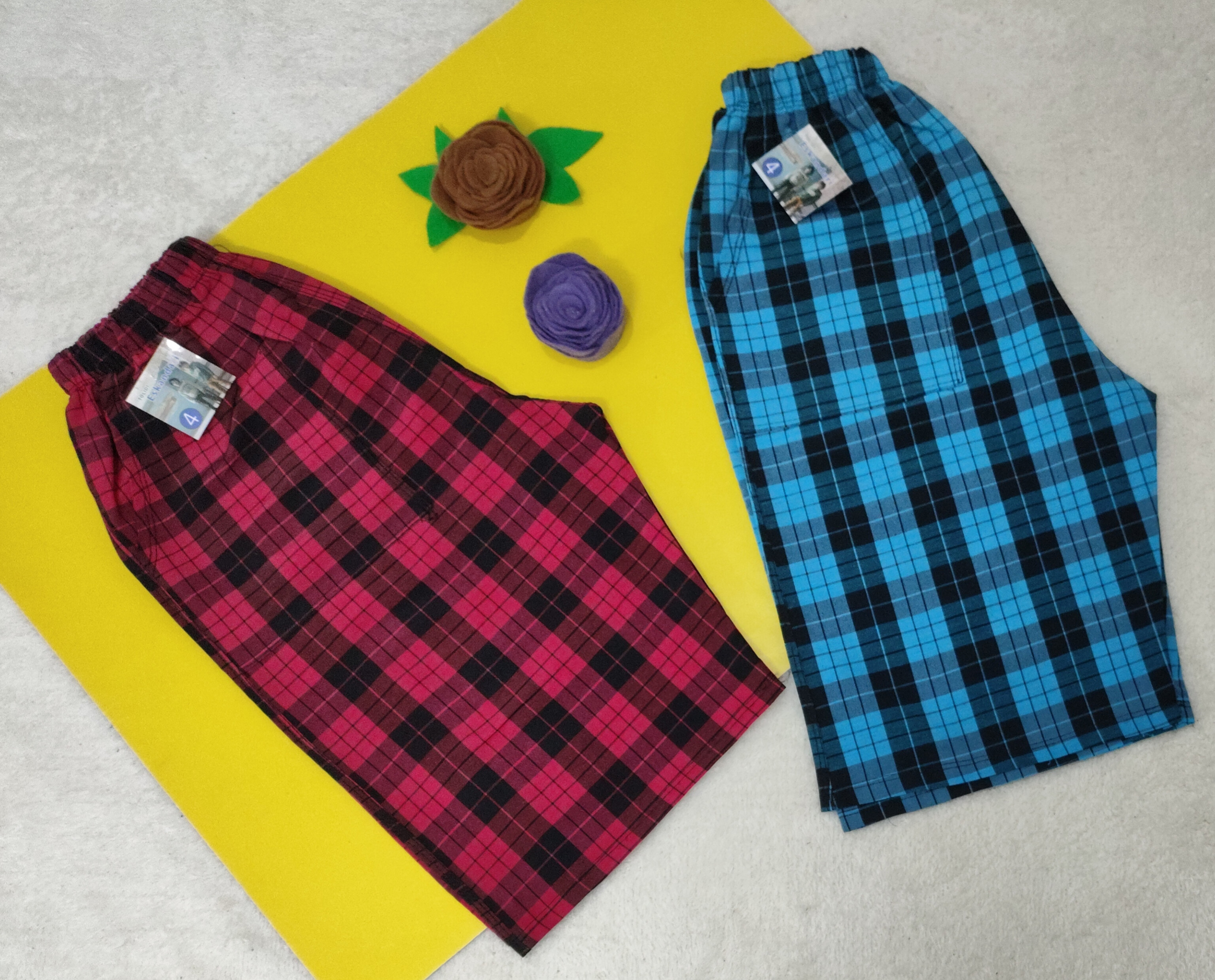 شلوارک پسرانه قرمز و آبی چهارخونه