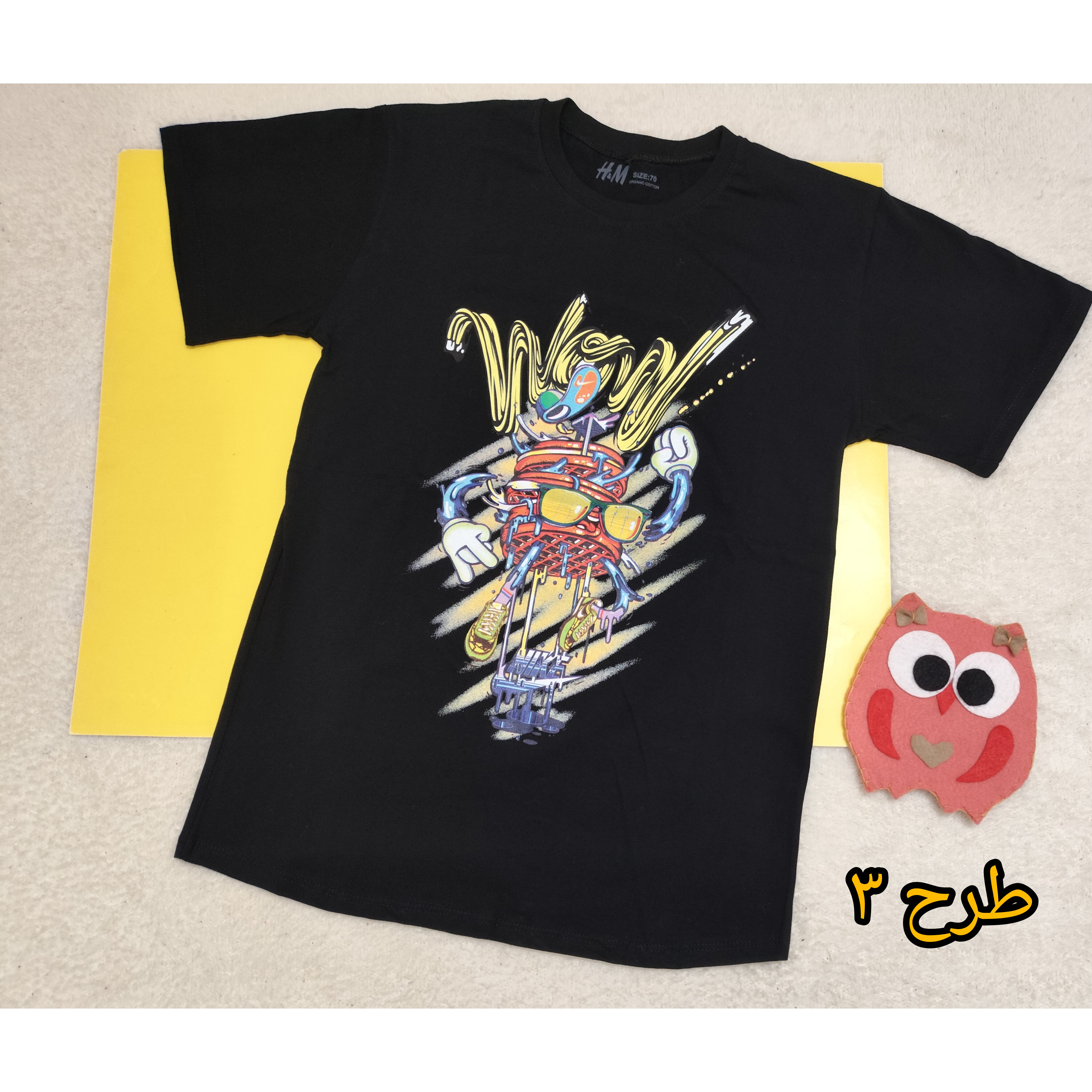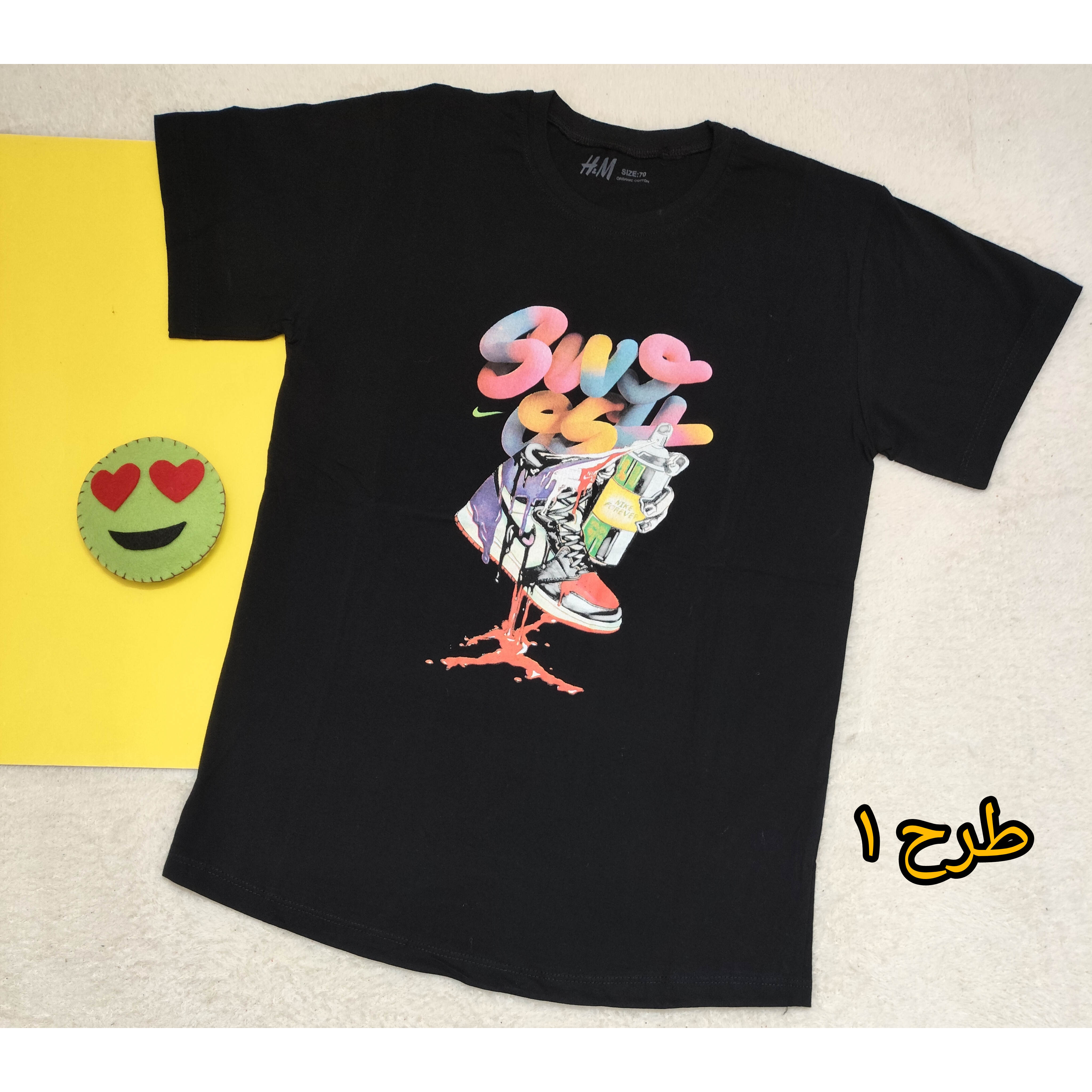 تیشرت اسپورت  نخپنبه رنگ مشکی طرح دار