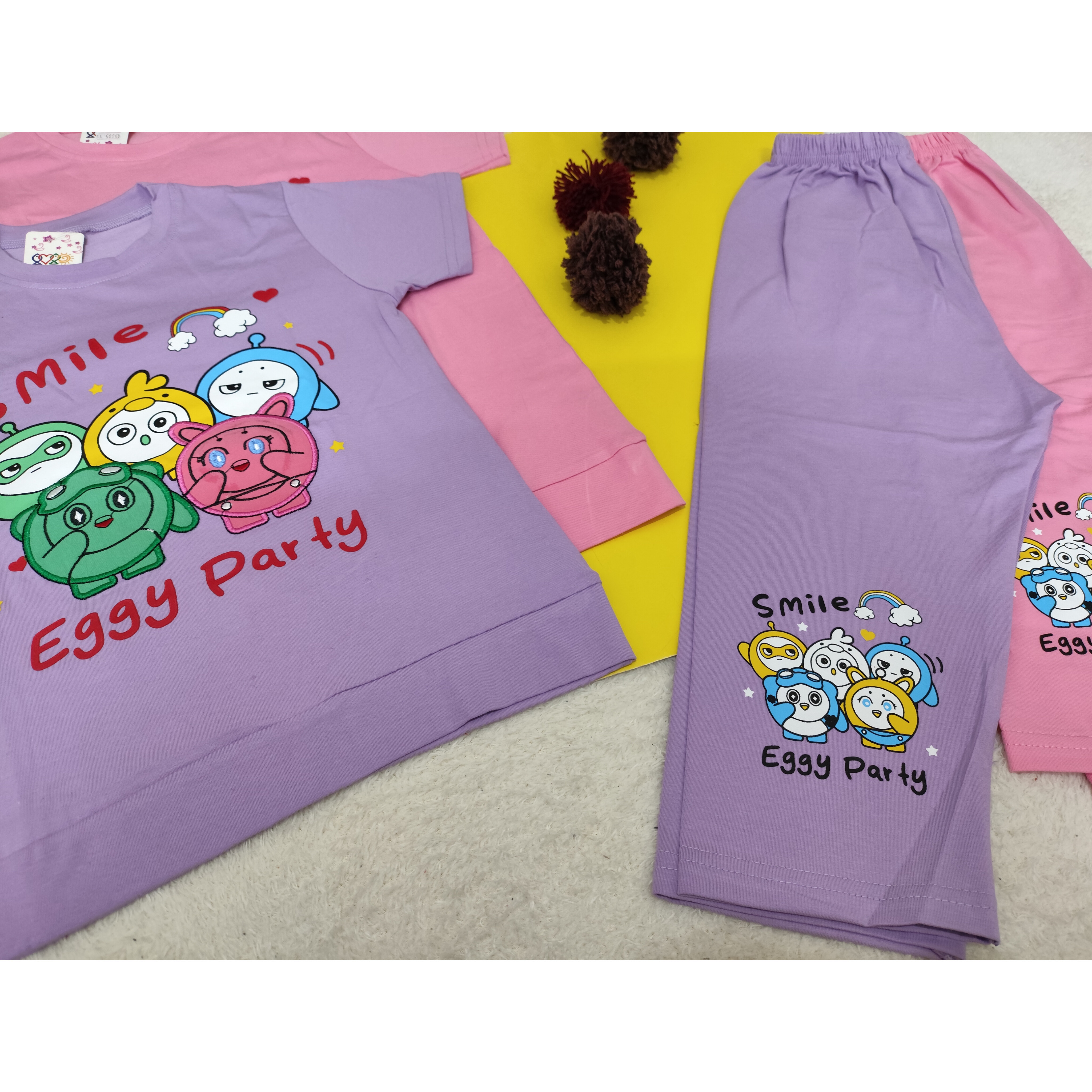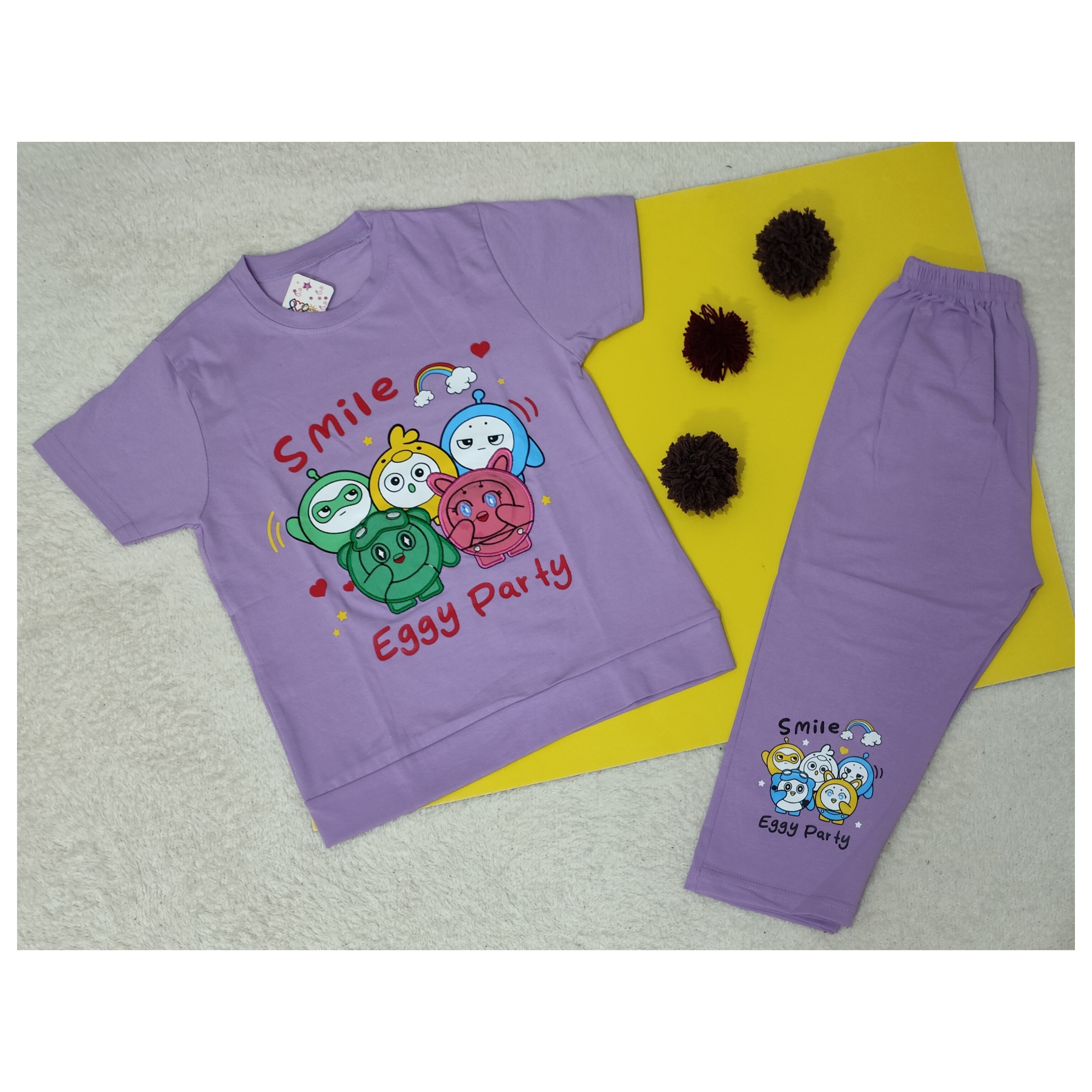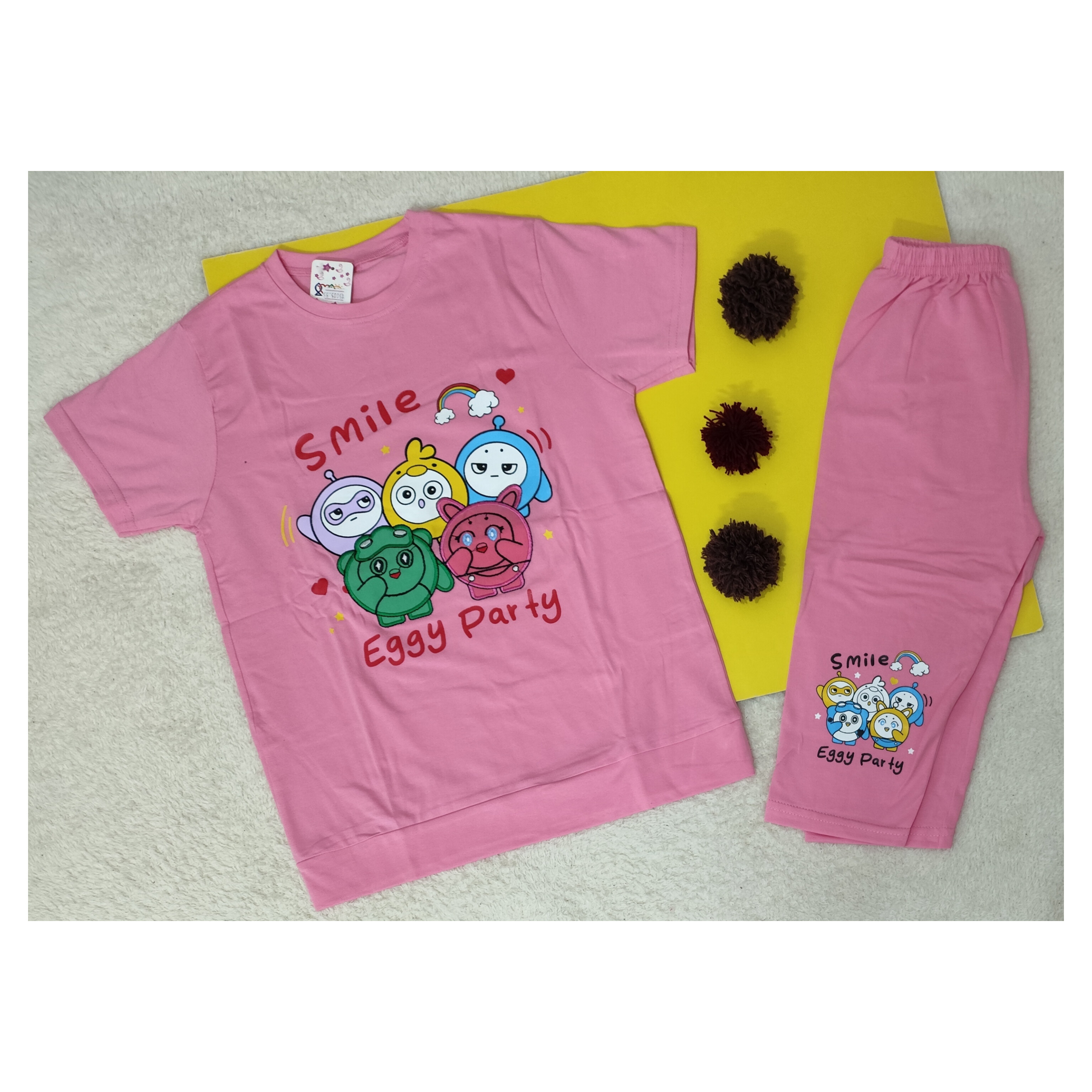 تیشرت شلوارک ست دخترانه جنس نخ پنبه طرح عروسک ها