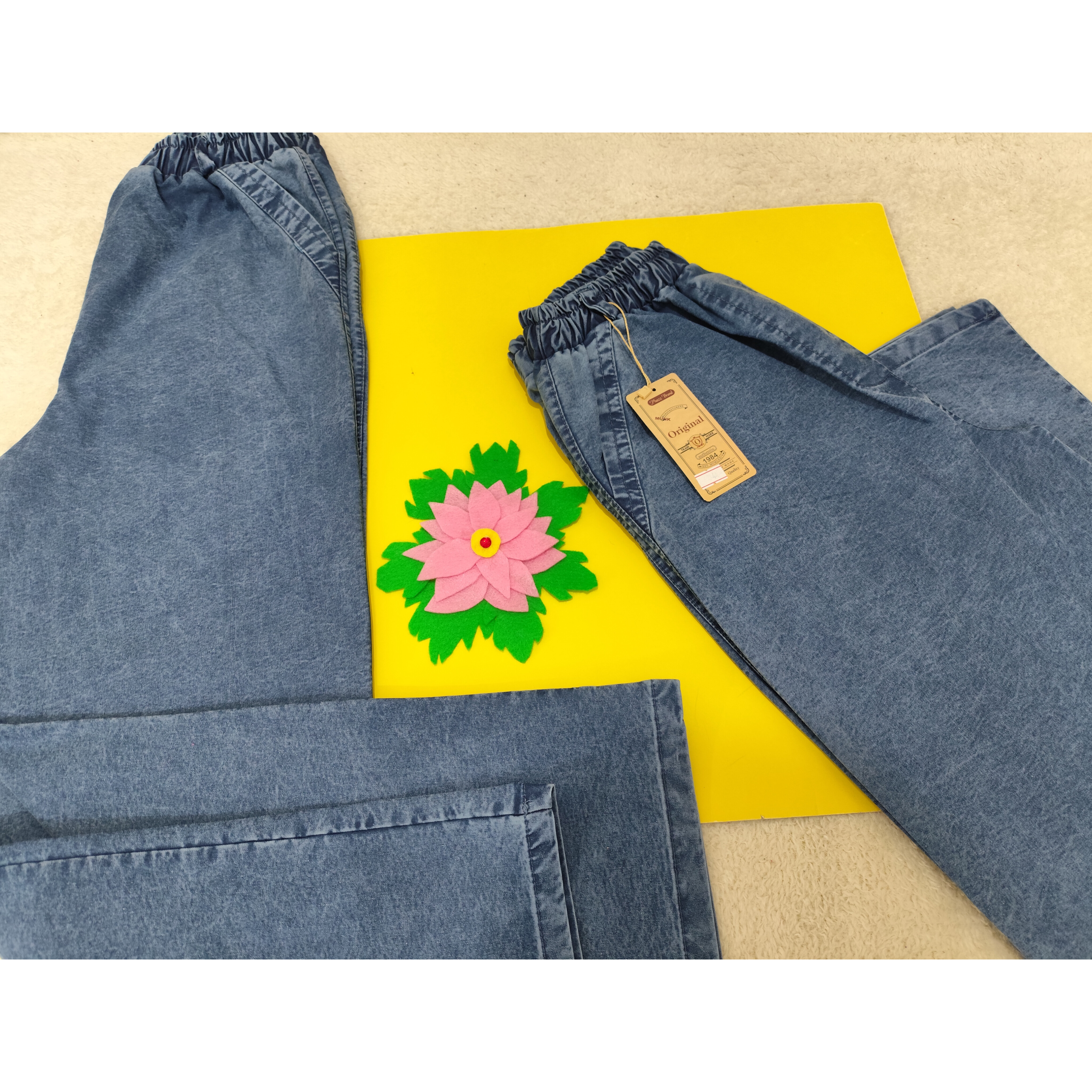 شلوار لی کاغذی زنانه مدل بگ رنگ آبی