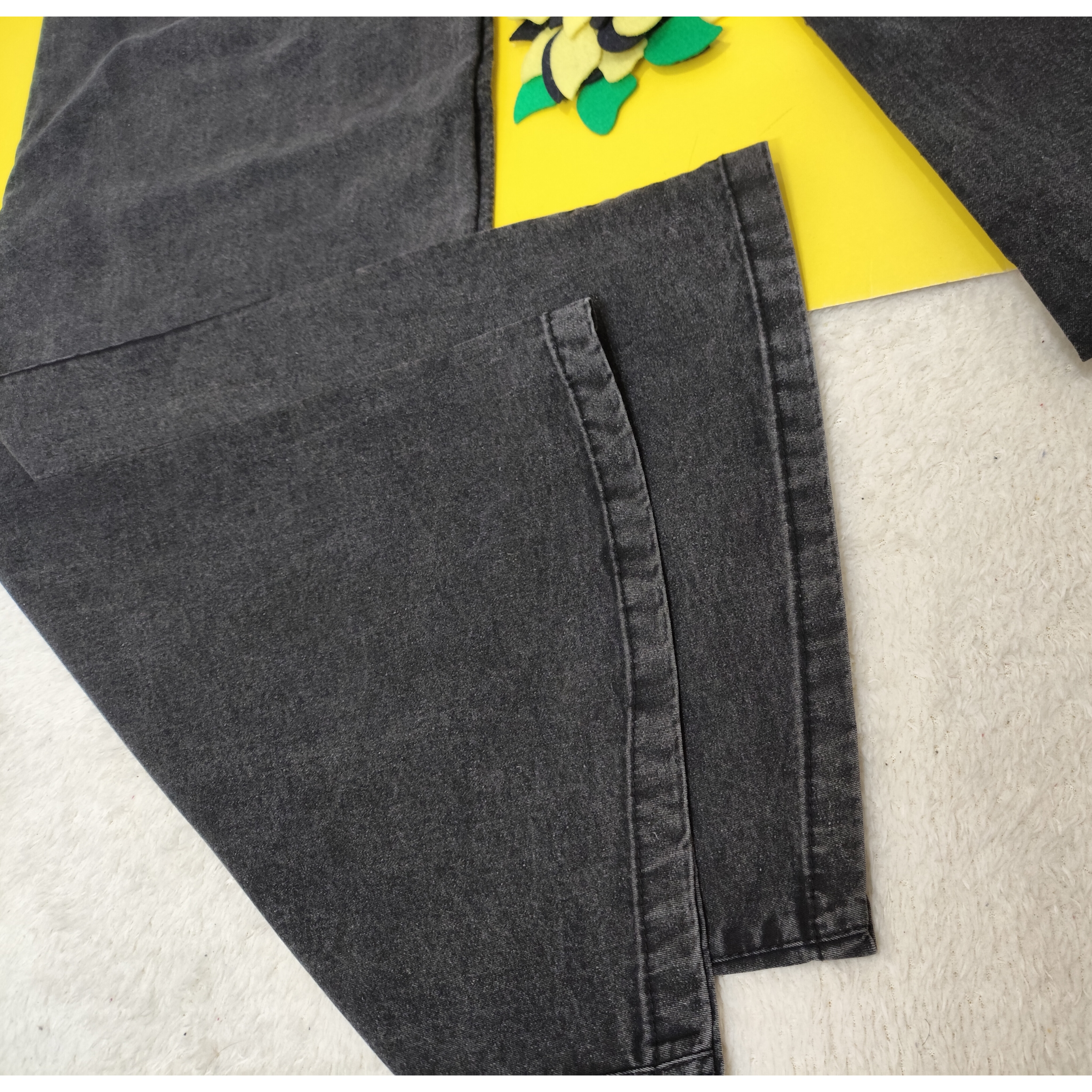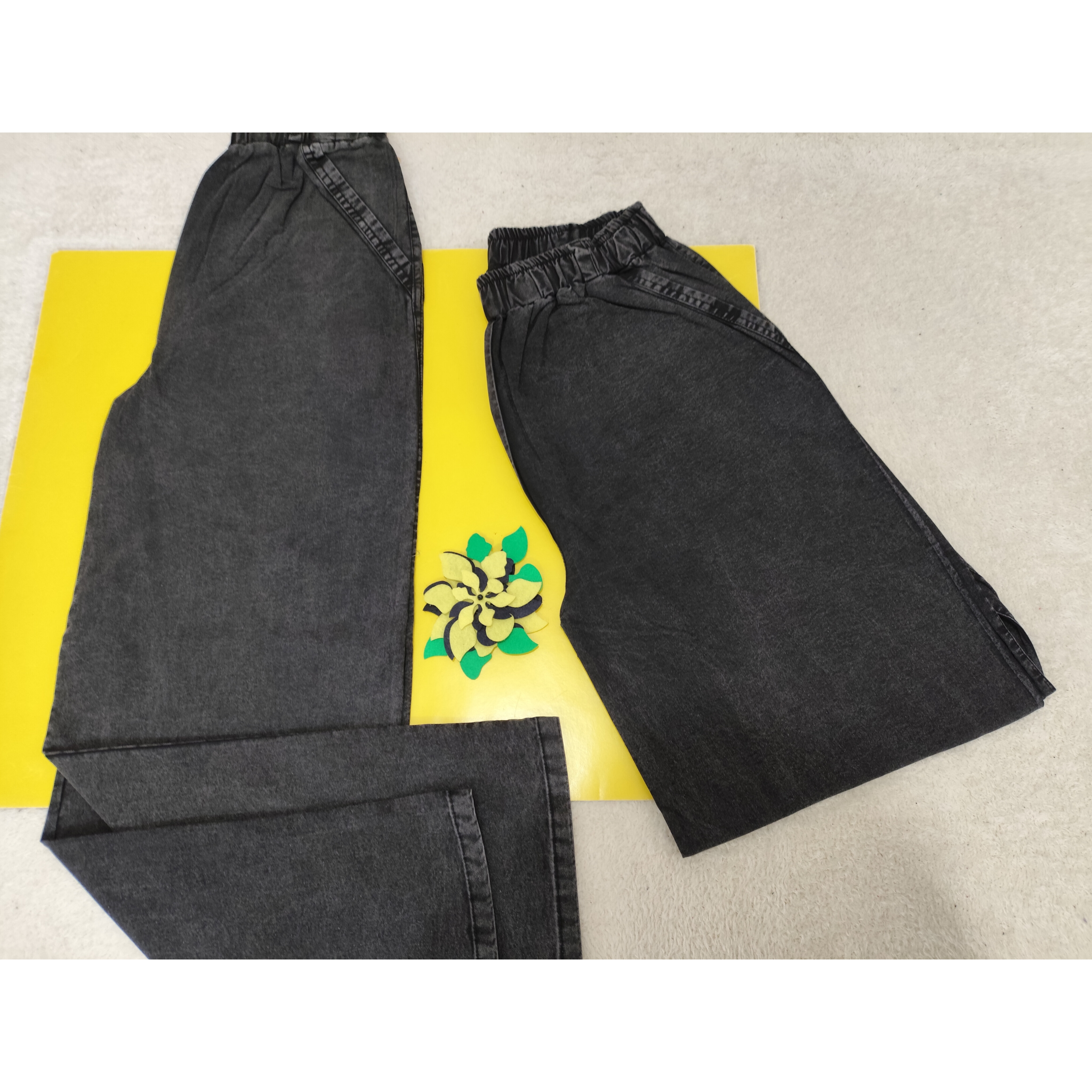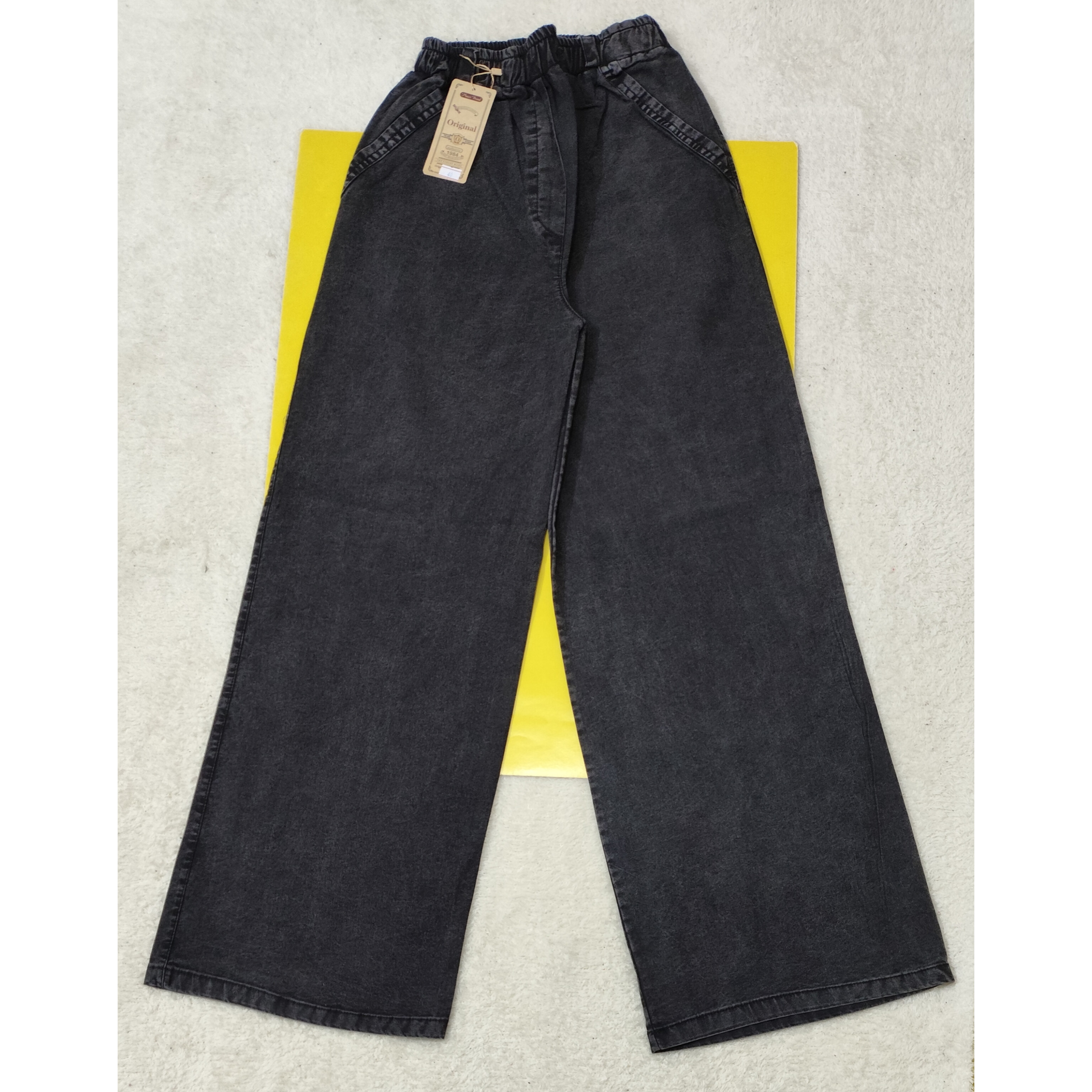 شلوار لی کاغذی بگ زنانه رنگ زغال سنگی