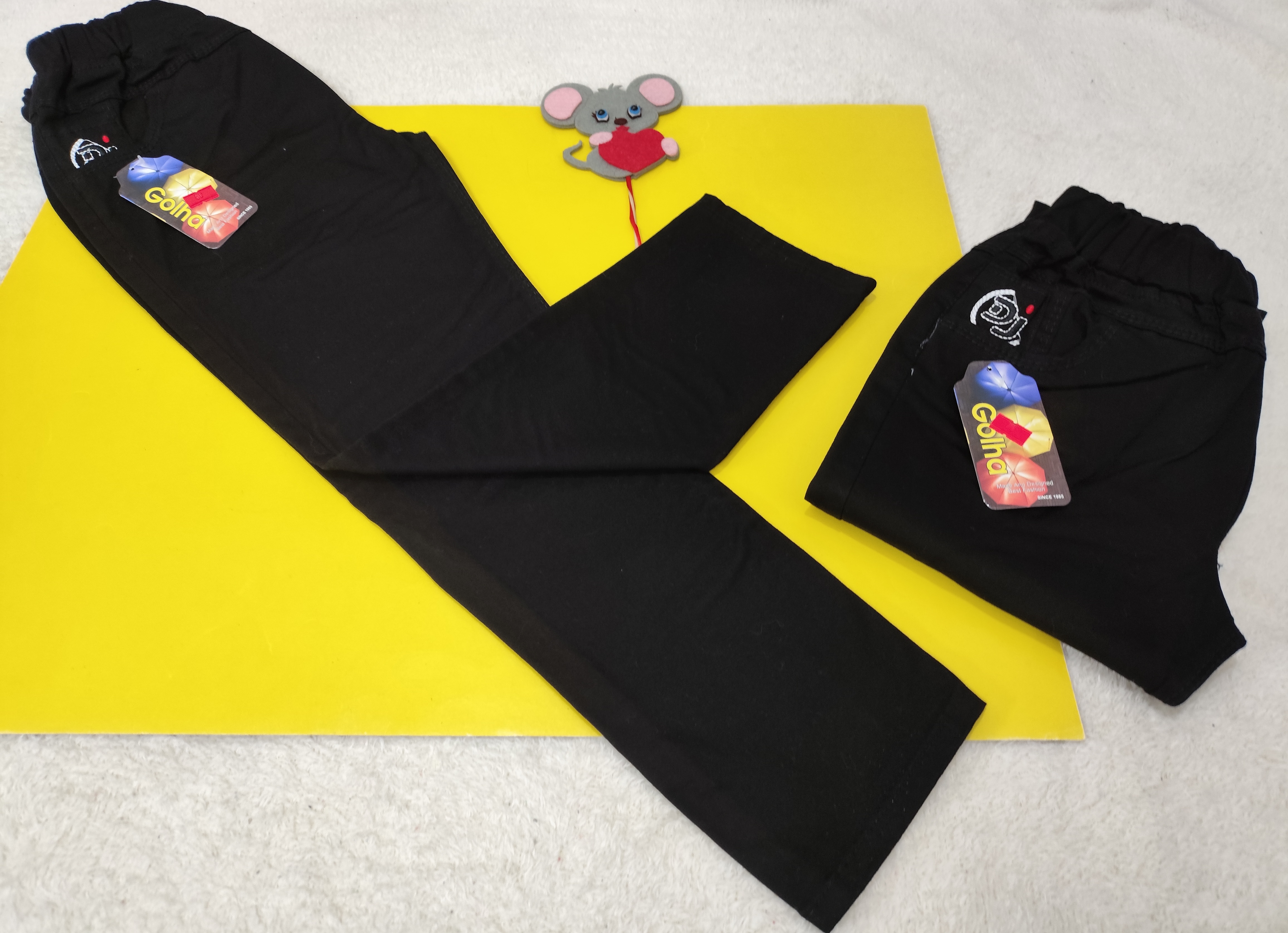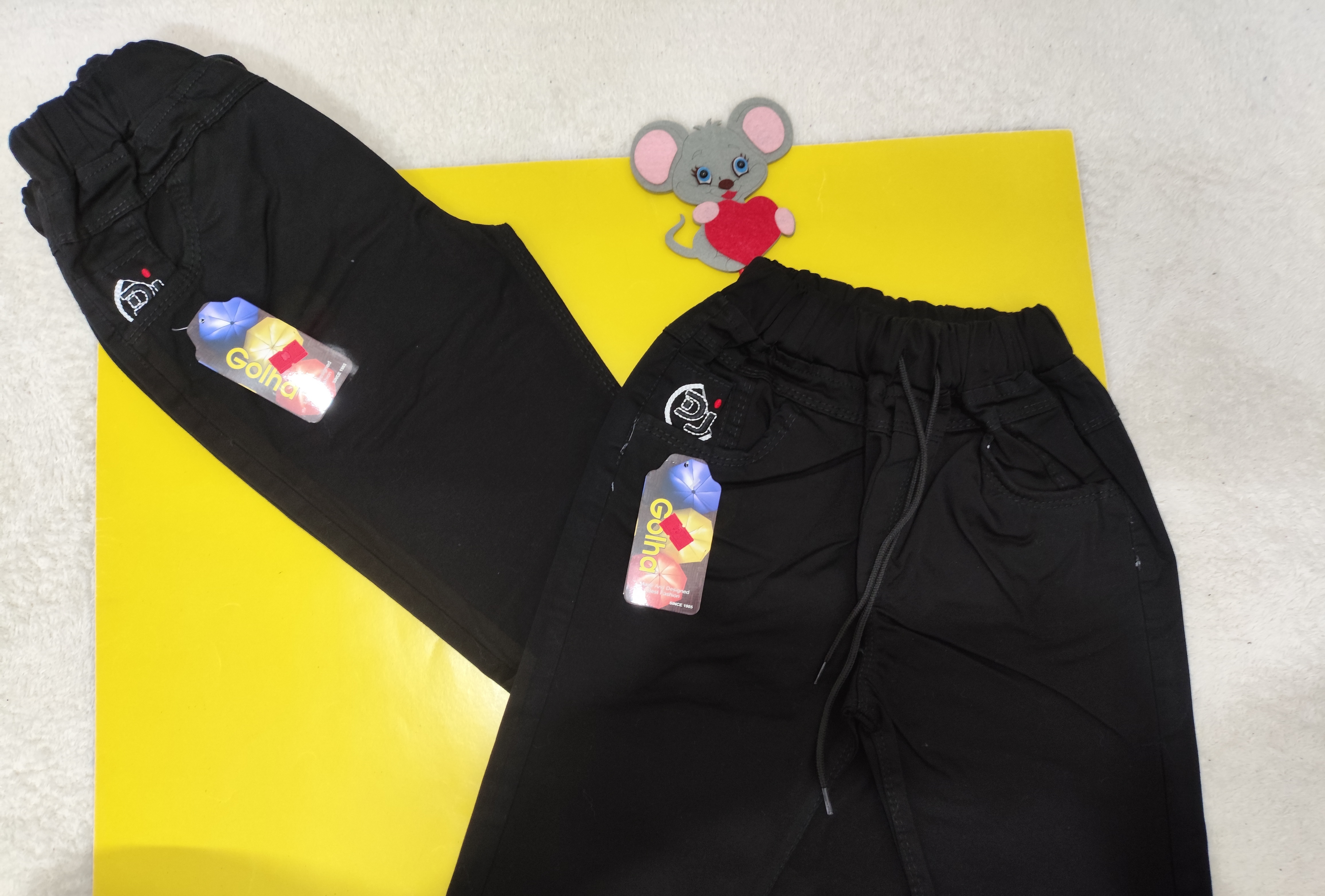 شلوار کتان اسپورت کمرکش مشکی قد 75 تا 100