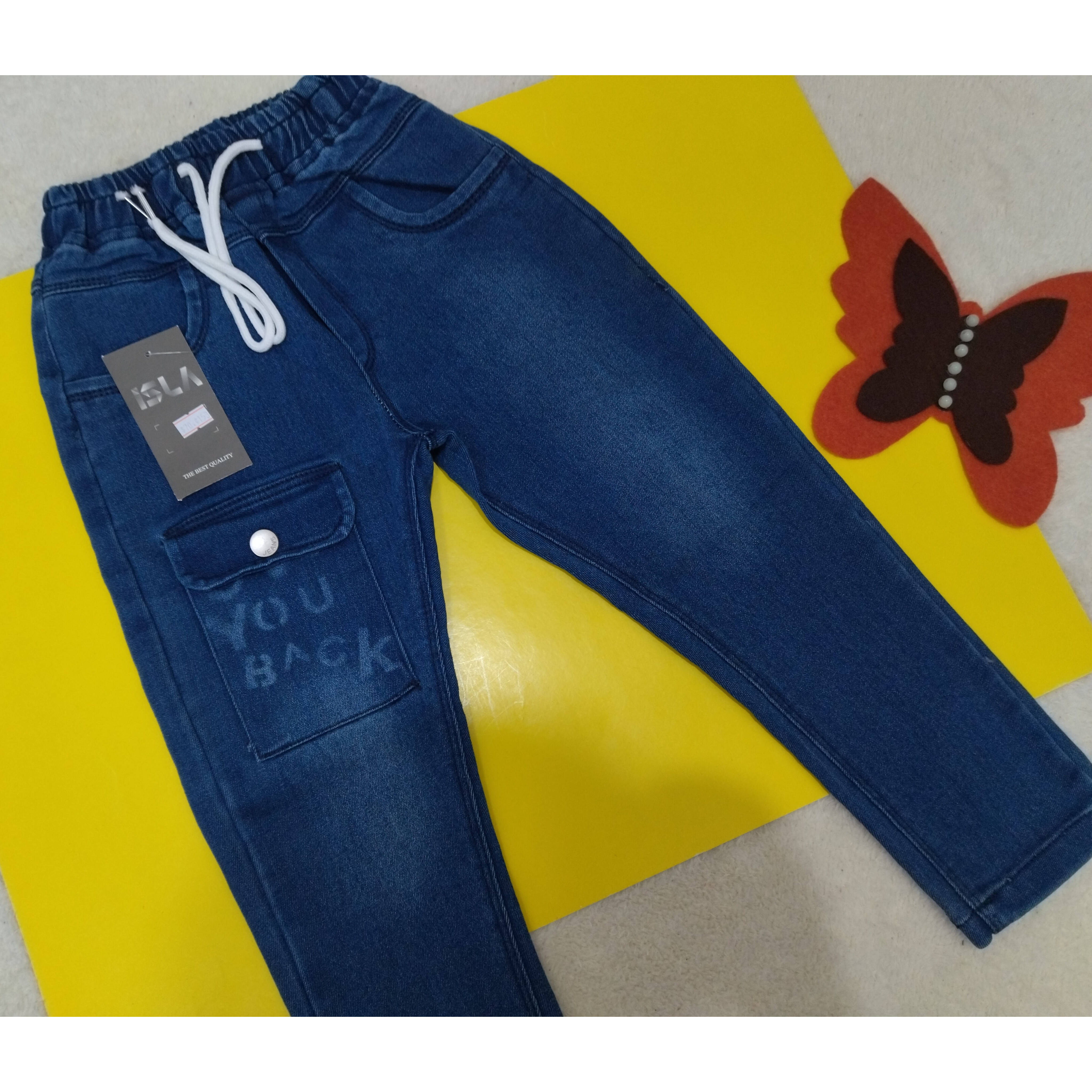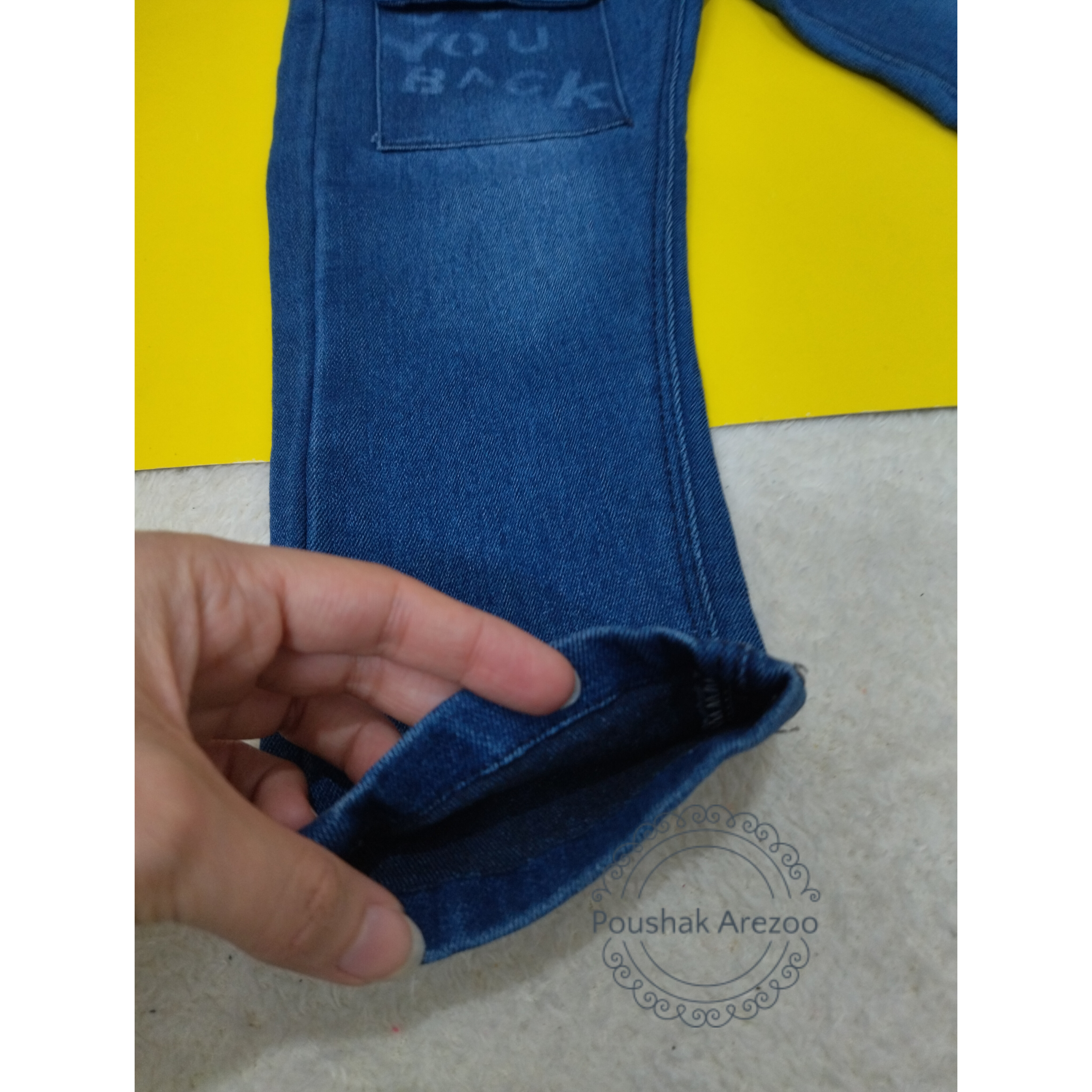شلوار لی پسرانه  کمر کش رنگ سورمه ای  قد 75 تا 100