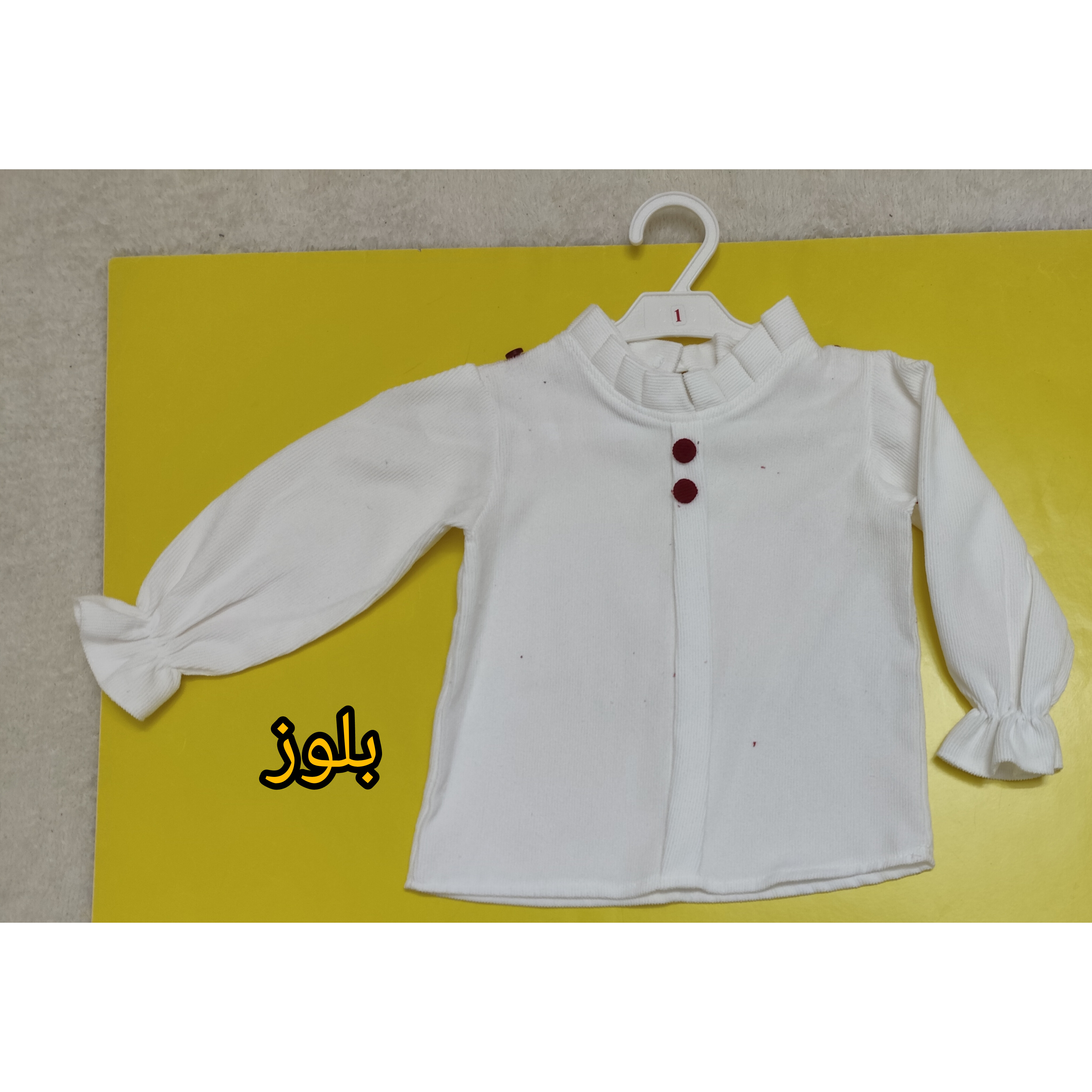 🎄بلوز کار سفید رنگ است و پشت بلوز دکمه خور است
