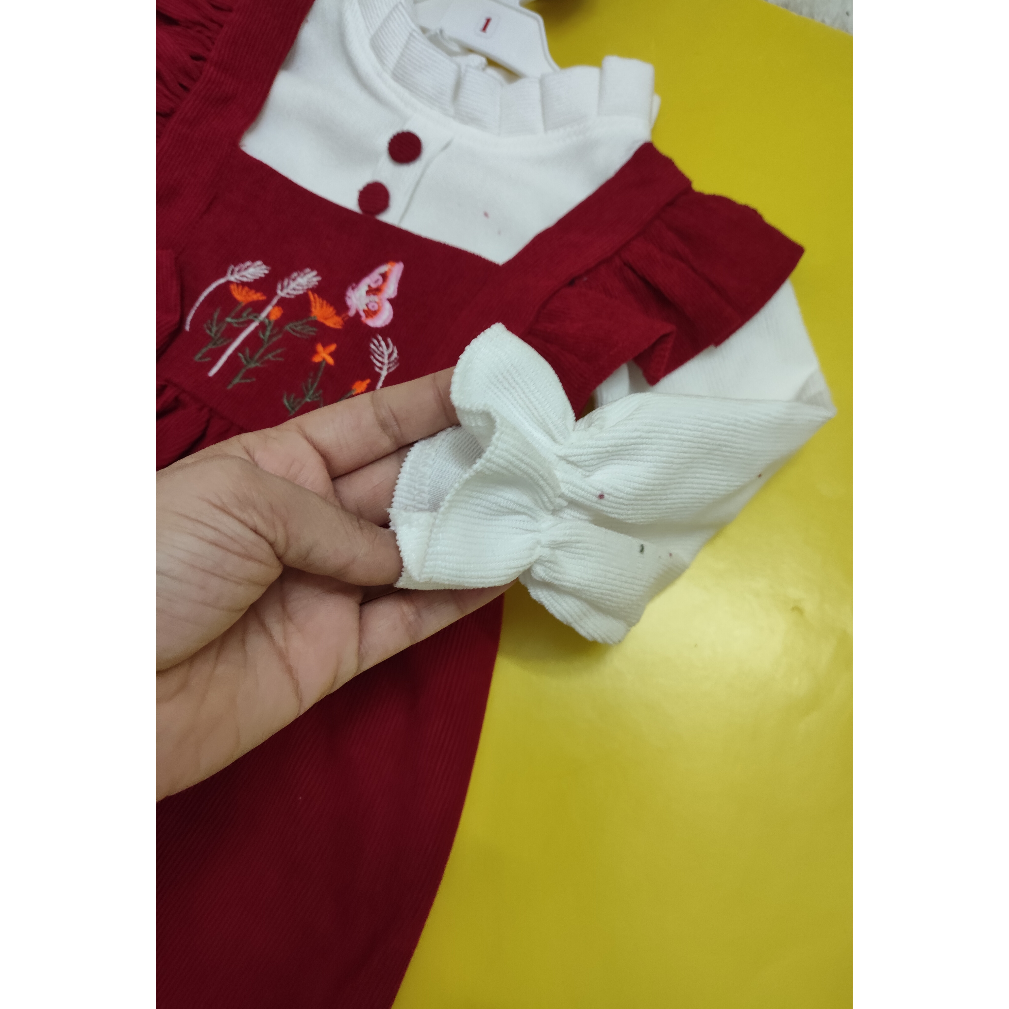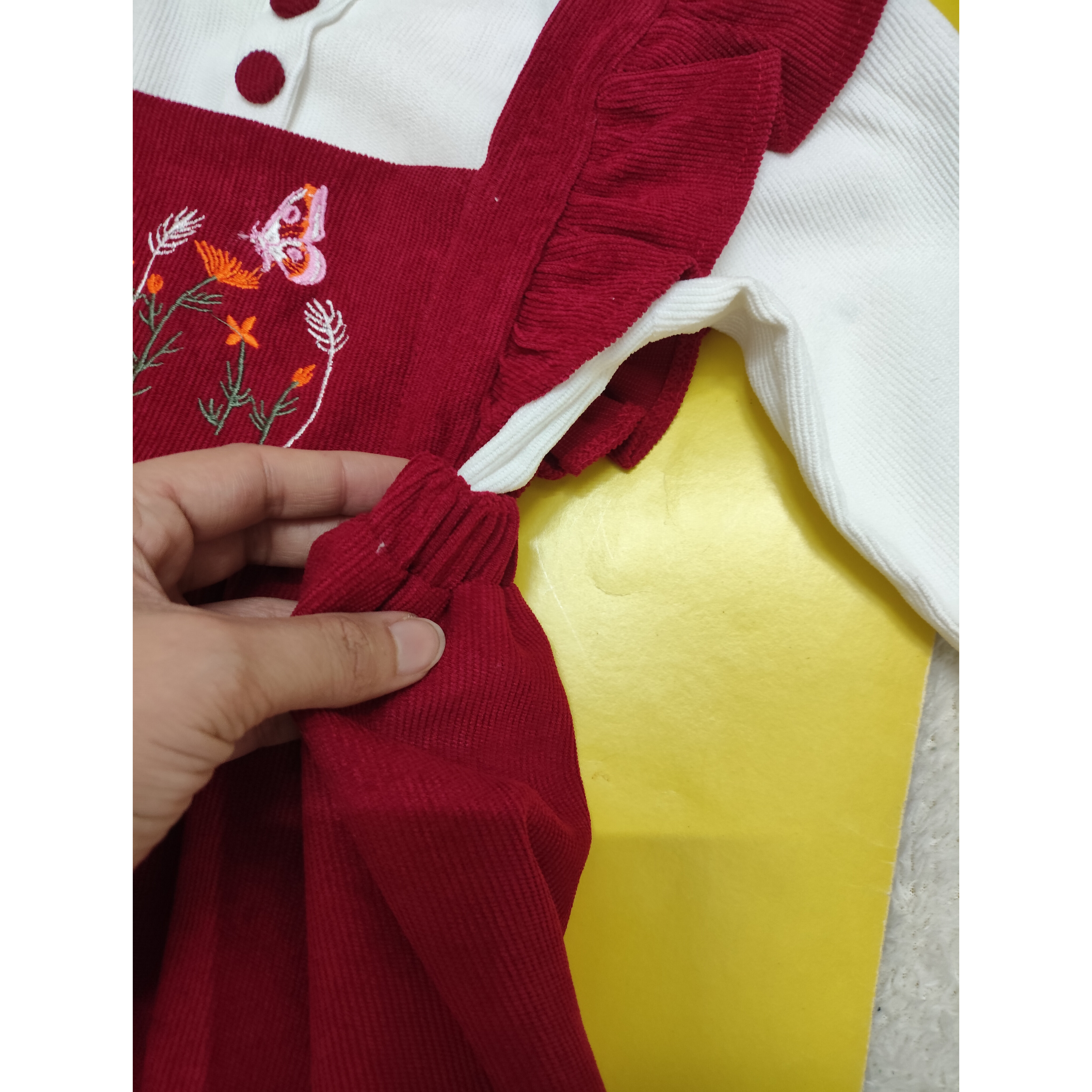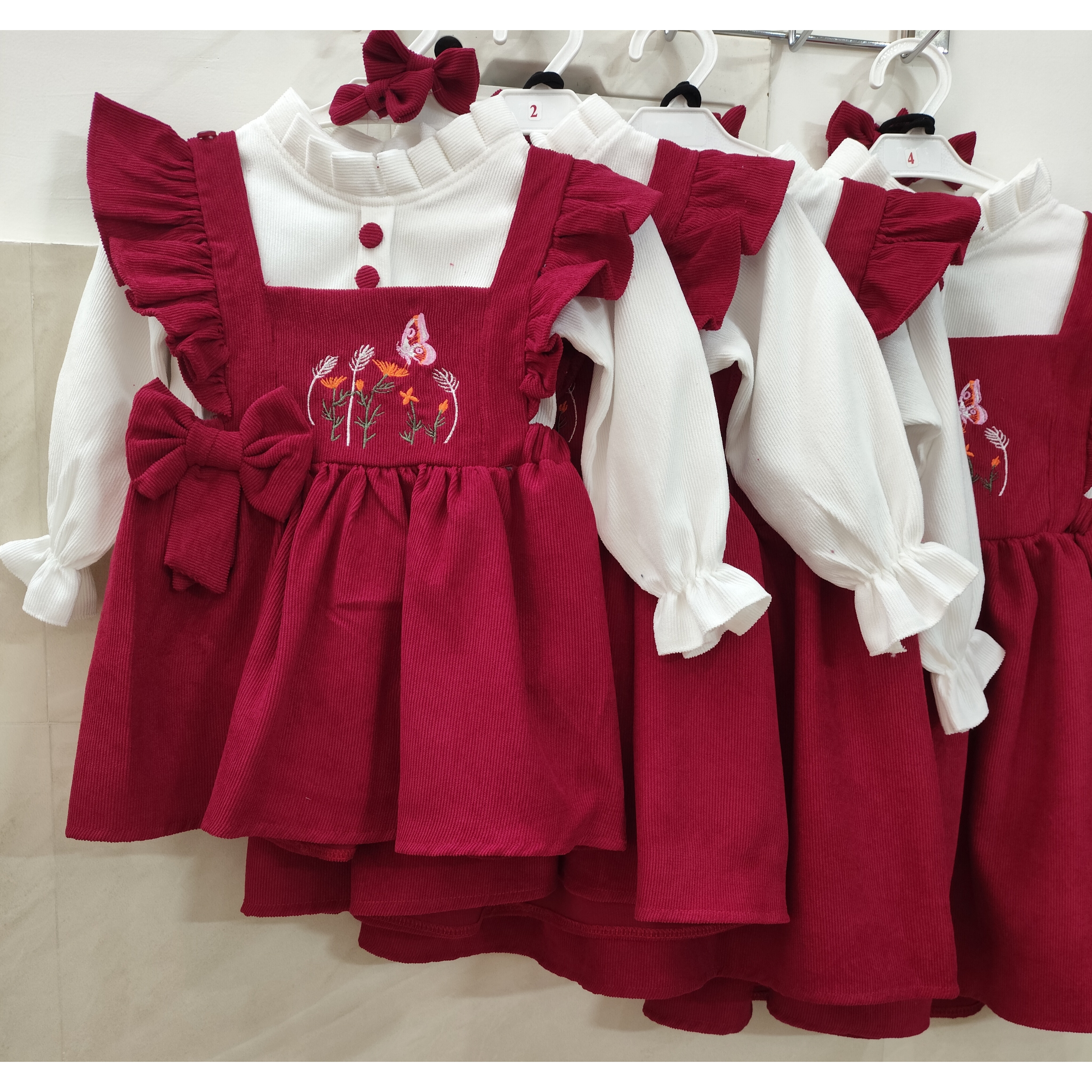 🪻بلوز توسط دکمه به سارافان وصل میشود که تن بچه ها شُل نایستد