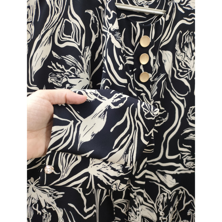 شومیز مجلسی زنانه یقه گرد آستین بلند جنس کرپ الیزه سایز بزرگ رنگ مشکی کرم