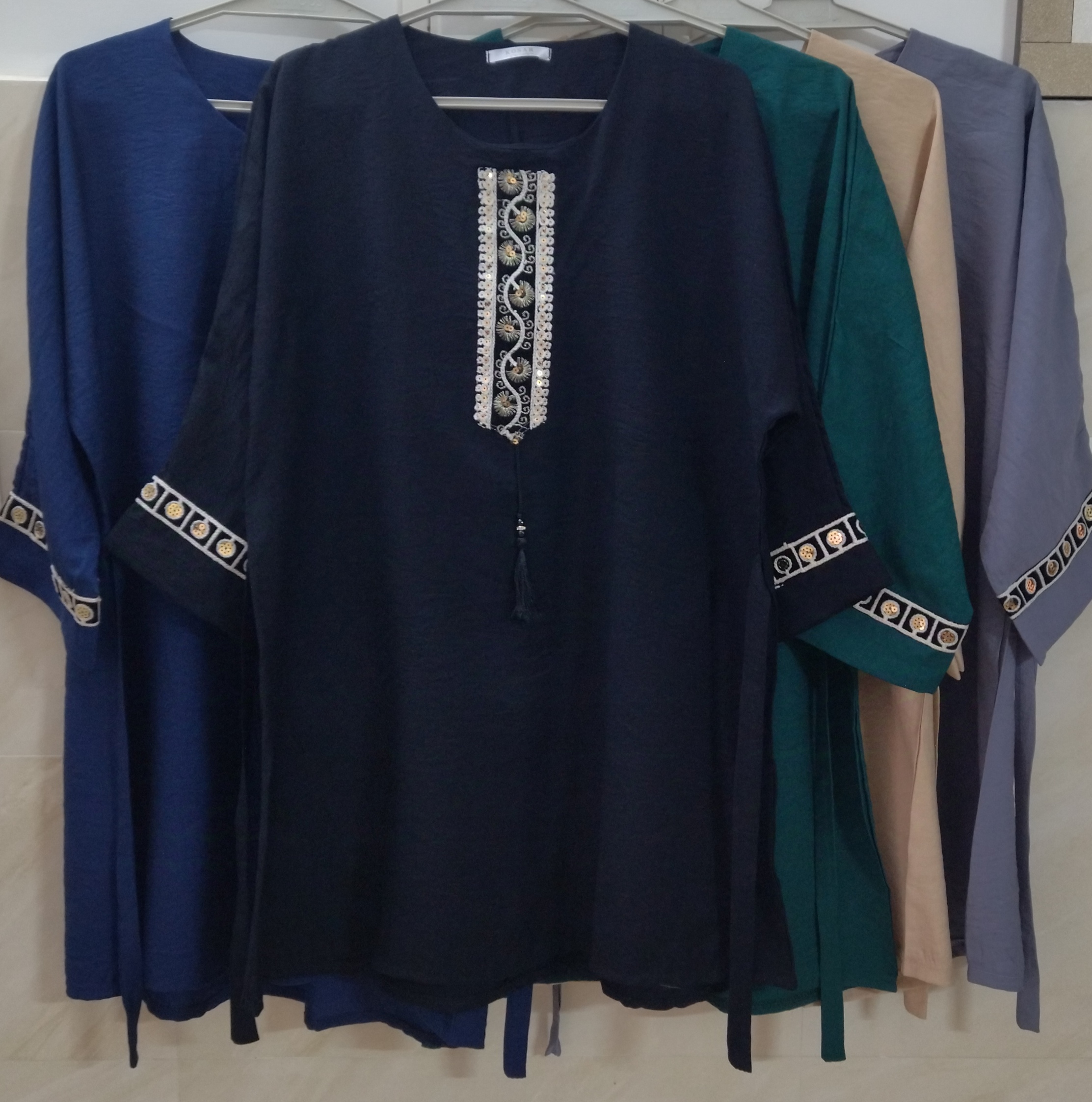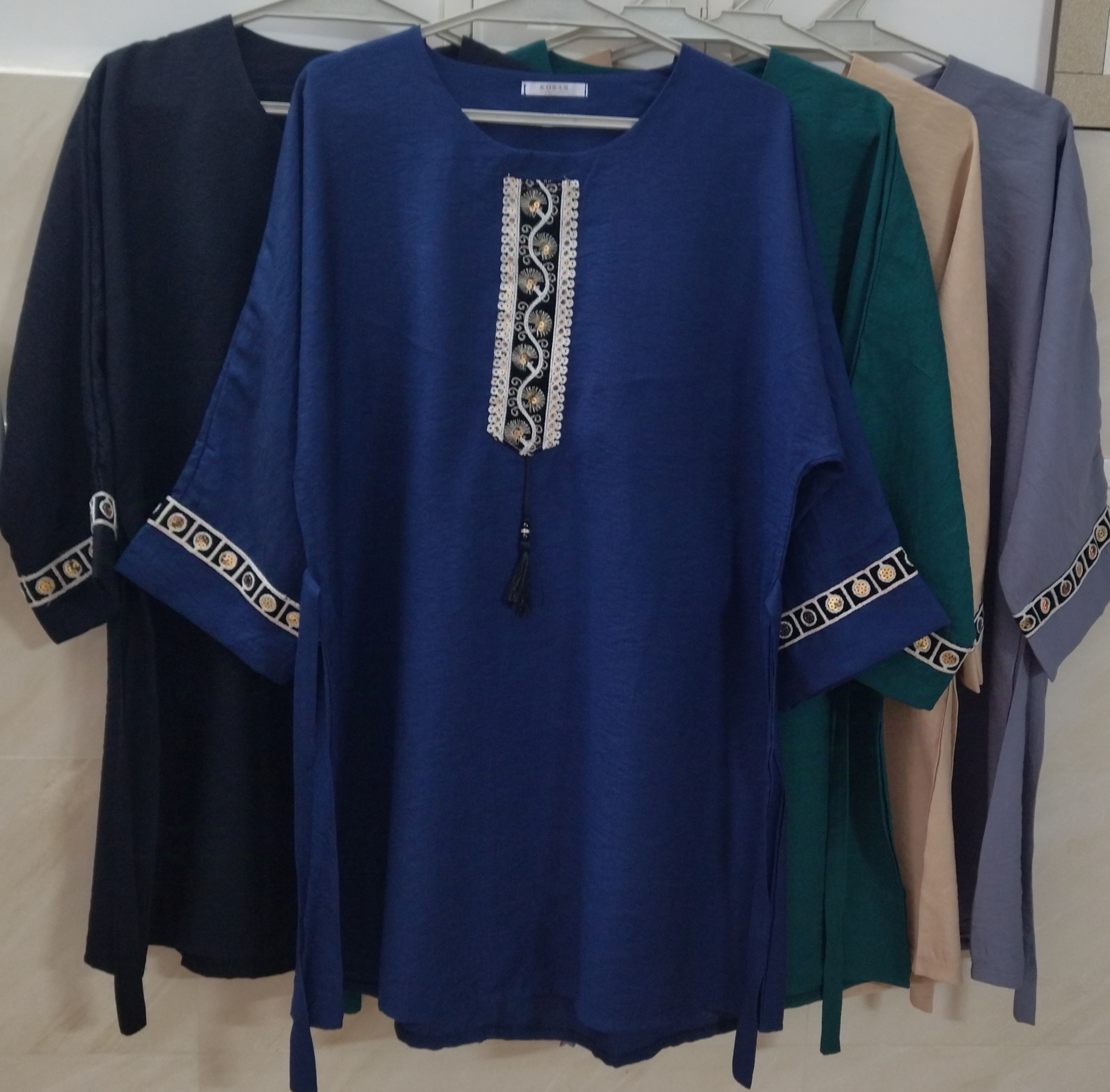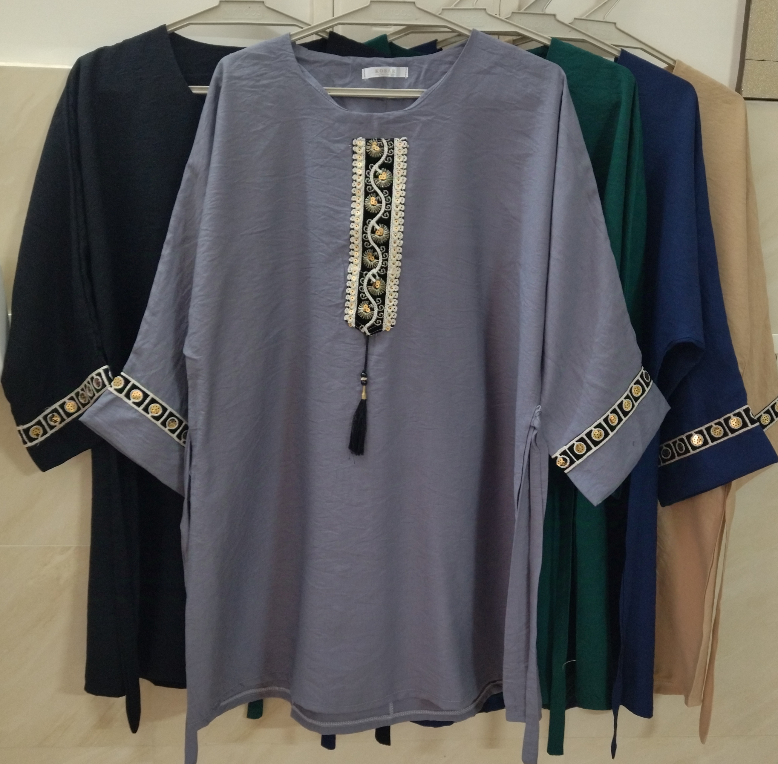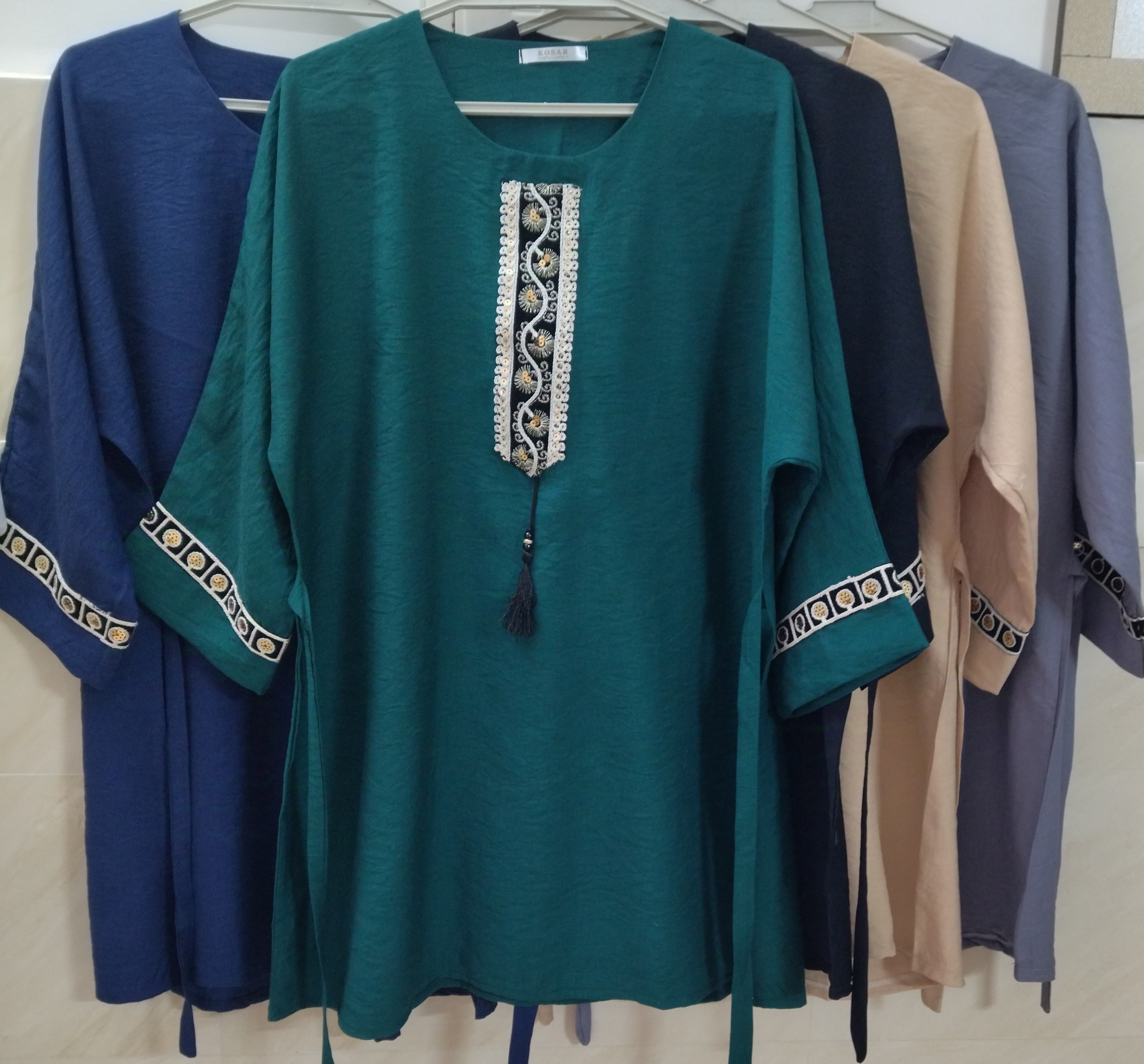 ✅قد تونیک 85 ✅قد آستین از لبه یقه 55✅دور سینه 122 ✅دور باسن 134